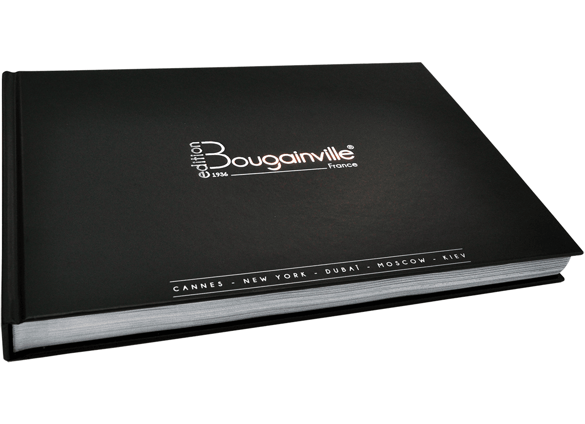 Couverture composée d’un papier couché brillant en 135g imprimé au noir avec un pelliculage Mat Anti-rayures contrecollée et rembordée sur un carton 30/10° (très forte épaisseur) avec des pages de garde en papier de création Popset de 170g au coloris réglisse.