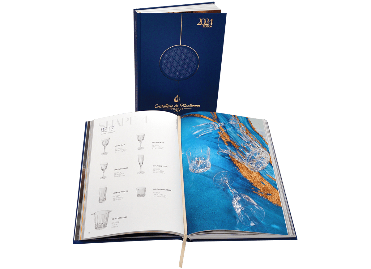 Le savoir faire de la maison Cristallerie de Montbronn allie l’expérience, la beauté des produits et le positionnement en matière de luxe dans les arts de la table. L’impression de leur création a été réalisée en très haute définition afin d’apporter toute la finesse des traits, l’éclat de leur design en verrerie.