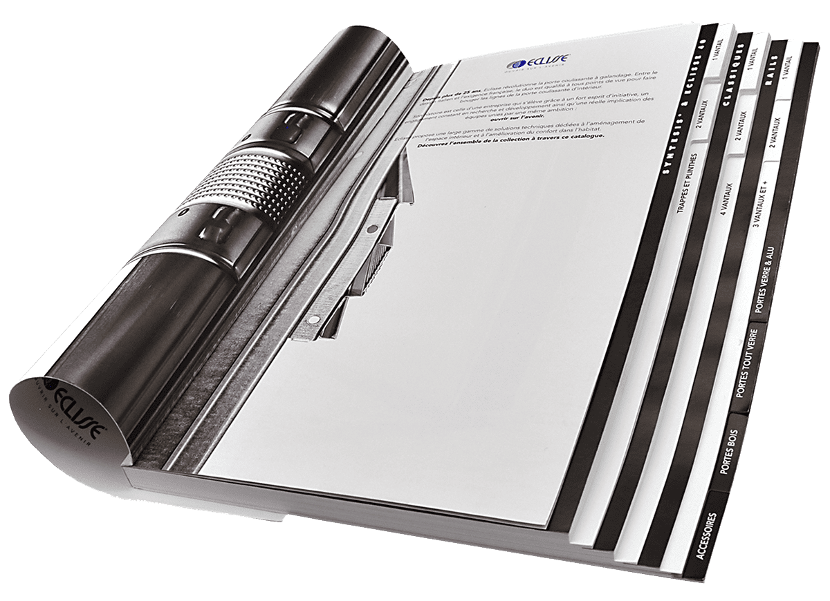 Catalogue au format 210 x 297 mm (A4) – ouverture à la française.